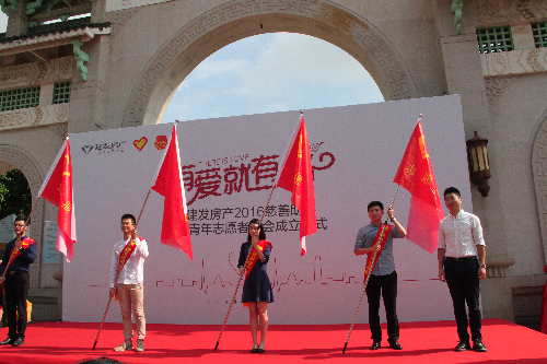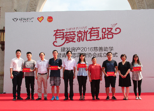 8月19日上午,“有愛(ài)就有路”建發(fā)房產(chǎn)2016慈善助學(xué)暨青年志愿者協(xié)會(huì)成立儀式在中山公園南門(mén)廣場(chǎng)舉行。建發(fā)房地產(chǎn)集團(tuán)副總經(jīng)理張?jiān)葡?,廈門(mén)市慈善總會(huì)副會(huì)長(zhǎng)巫秀美、黃金錠,團(tuán)市委常委、宣傳部部長(zhǎng)趙秋喜,建發(fā)房產(chǎn)團(tuán)委書(shū)記劉強(qiáng)以及來(lái)自建發(fā)房產(chǎn)各單位的志愿者代表和受助學(xué)生代表等110多人共同參與了本次活動(dòng)。