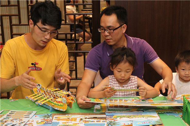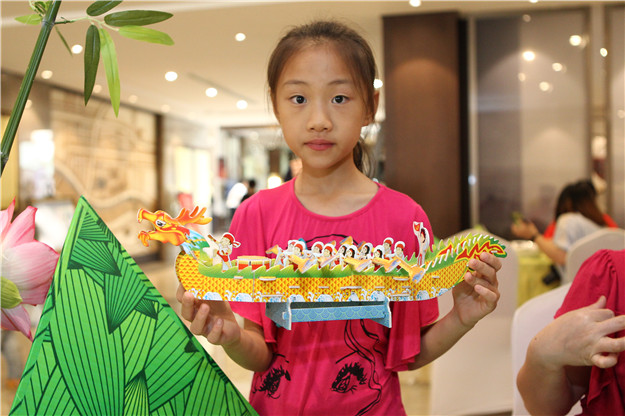 賽龍舟,是端午節(jié)的主要習俗,現(xiàn)已列入國家級非物質(zhì)文化遺產(chǎn)名錄?,F(xiàn)場的很多小朋友都表示很喜歡看龍舟賽,要造一個獨一無二的龍舟。在龍舟DIY活動中小朋友們發(fā)揮自己的奇思妙想,在龍舟模型上造出屬于自己的創(chuàng)意龍舟。