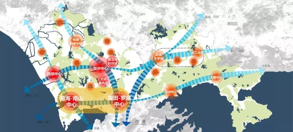 在這其中,深圳堪稱重頭戲。灣區(qū)時代的深圳,除了“香港-前海-大空港”一線,深圳的第二條既有科技引擎、又有核心樞紐的戰(zhàn)略走廊,即“香港-福田-龍華-光明-東莞”一線,將打通香港的資本、技術(shù)、人口與深圳科技創(chuàng)新、東莞高端制造的南北流動,擔(dān)起深圳中軸百年提升戰(zhàn)略的重任。