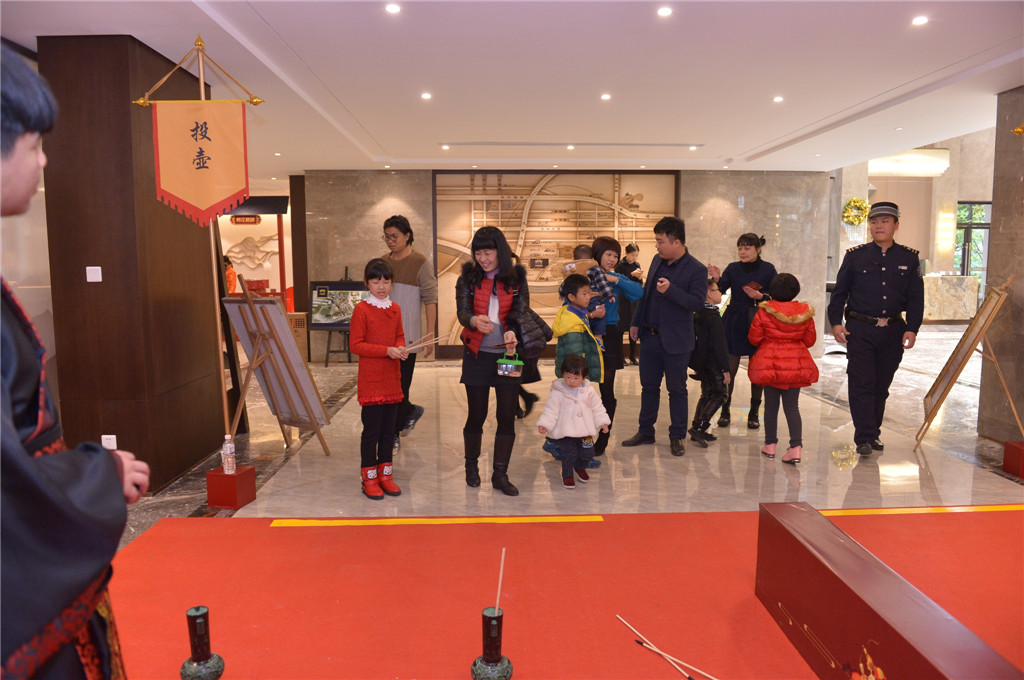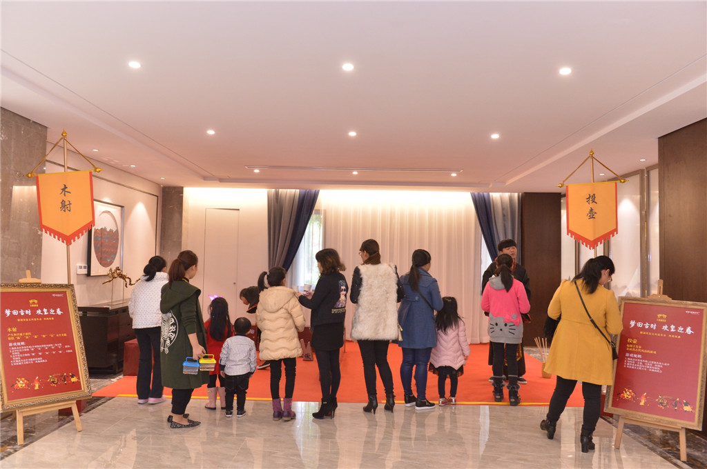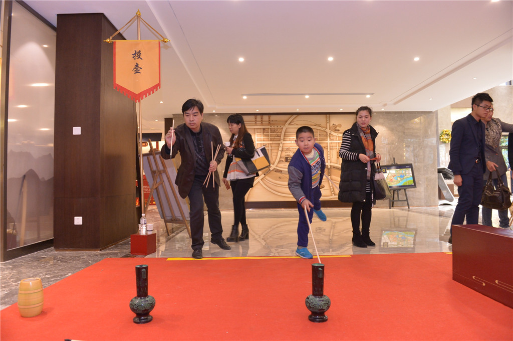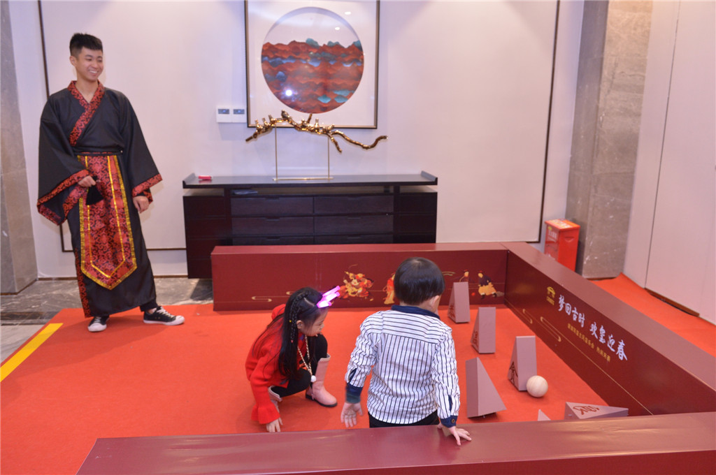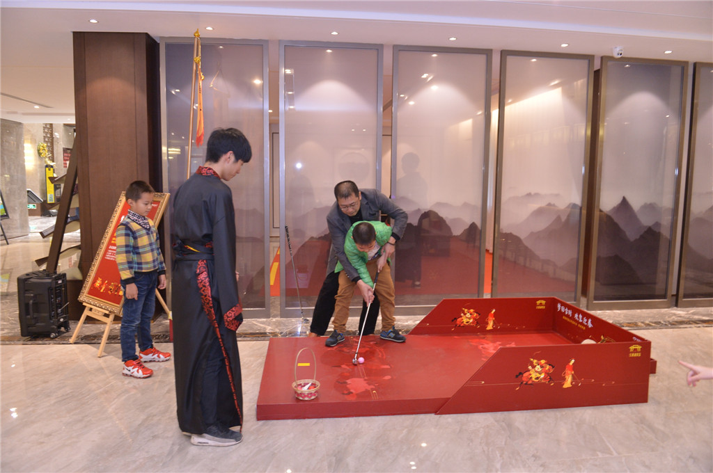 在這里我們只按照古代的規(guī)則交易。只通行古代的貨幣,加上文牒做古代的通行證。一張通關(guān)文牒,貨真價(jià)實(shí)的銅錢,以帥旗裝點(diǎn)互動(dòng)區(qū)域…… 玩轉(zhuǎn)古代競(jìng)技項(xiàng)目:捶丸、木射、撈金魚、投壺。每種不同的運(yùn)動(dòng),都有起源,來自不同的朝代。每個(gè)古法互動(dòng)都有身著相應(yīng)年代服飾的工作人員指引。先秦時(shí)代的投壺比誰投中的多;唐代的木射是現(xiàn)代保齡球的起源;起源于唐代的撈金魚,是最受小朋友喜愛的;明朝捶丸類似于現(xiàn)代的高爾夫球,一桿進(jìn)洞。過五關(guān)、斬六將。來賓可以取得重重的古代關(guān)卡的證明,獲得蓋章,以賺取更多的銅錢。