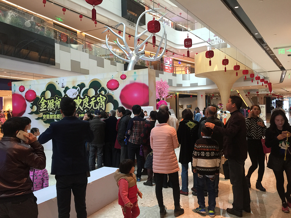 當(dāng)天下午三點(diǎn),JFC品尚中心A館中庭熱鬧非凡,桃花林內(nèi)猜燈謎的人絡(luò)繹不絕,QQ表情符號猜成語、傳統(tǒng)謎語、網(wǎng)絡(luò)腦筋急轉(zhuǎn)彎等各種題目分別懸掛在桃花樹上,猜中的顧客均獲得由JFC品尚中心提供的小猴子手機(jī)掛件。