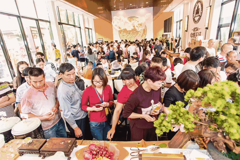 活動現(xiàn)場,神秘中式懸浮術亮相,古琴雅音對桃林,悠揚琴聲向到訪的客戶訴說著,從容、優(yōu)雅才是生活應有的姿態(tài);精湛賞茶道表演讓人大開眼界,良朋圍坐品香茗幾盞聊一聊新中式生活的詩意盎然。