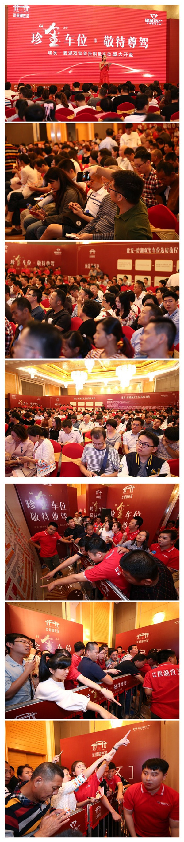 還未開始,就已人氣爆棚!在現(xiàn)場(chǎng)工作人員的熱情接待下,業(yè)主們依次簽到,移步至等候區(qū)等待開盤,整個(gè)過(guò)程緊張而有序。隨著主持人宣布現(xiàn)場(chǎng)搖號(hào)開始,在場(chǎng)的數(shù)百名業(yè)主立刻群情涌動(dòng),只為自己的愛(ài)車尋找一個(gè)家,人氣可謂相當(dāng)火爆。不消片刻,緊張激烈的“搶位大戰(zhàn)”,熱銷之勢(shì)蔚為壯觀,“一車易得,車位難求”的現(xiàn)象激情上演!數(shù)百席限量車位平面圖一片飄紅,一輪輪火爆的節(jié)奏引得陣陣驚呼。4小時(shí)瘋搶,每一批車位釋放瞬間遭“秒搶”,上演了一場(chǎng)驚心動(dòng)魄的“速度與激情”!這就是建發(fā)·碧湖雙璽的魅力之所在,再次凸顯建發(fā)房產(chǎn)旗下項(xiàng)目“開盤即熱銷,次次創(chuàng)輝煌”的傳奇。