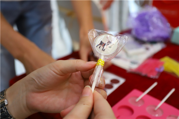 有一種美味,融化在舌尖上的感覺(jué)如絲一樣滑爽,香醇柔滑的味道沁潤(rùn)到心田,這就是圣誕星空棒棒糖甜蜜的味道。特制的糯米糖紙,精心制作出獨(dú)一無(wú)二的圣誕主題照片糖紙,小業(yè)主們?cè)诠ぷ魅藛T的指導(dǎo)下貼好一顆顆又漂亮,又充滿心意的糖果,并用精美漂亮的禮盒裝好,各種花樣的圣誕糖紙,萌的小業(yè)主們愛(ài)不釋手。