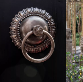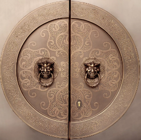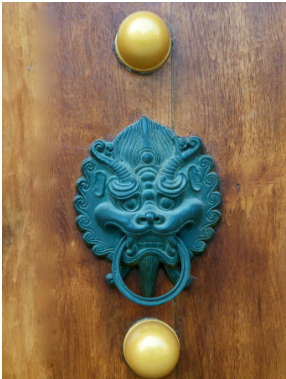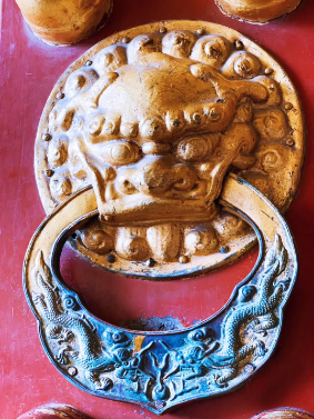 鋪首的造型在古代多種多樣,多以金屬冶制成獸首狀作為底座,安裝在大門上用以銜門環(huán)。環(huán)則作為主要的受力構(gòu)件,用來開關(guān)大門或扣門,集合實用性和裝飾性于一體。