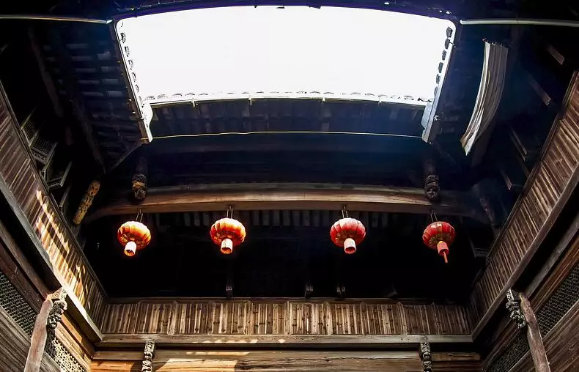 四水歸堂以傳統(tǒng)的“間”為基本單元,房屋開間多為奇數(shù),每間面闊3至4米,進(jìn)深五檁到九檁,每檁1至1.5米,各間以廊相連,圍合成封閉式院落。