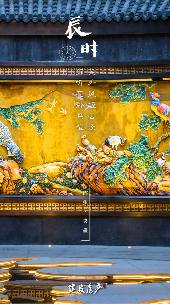 唐時,照壁之美就已驚艷世人,詩人司空曙有“云母屏風(fēng)光照壁”之嘆。廣州央璽的《百鳥朝鳳》照壁,結(jié)合嶺南灰塑技藝,在長15米、高2米的墻體內(nèi)塑造了鳥類四方來儀之境,成為現(xiàn)代灰塑不可多得的珍品。