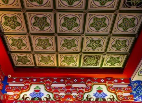 為了不露出建筑的梁架,在梁下用天花枋組成的木框,框內(nèi)放置密且小的木方格,這就是平闇。