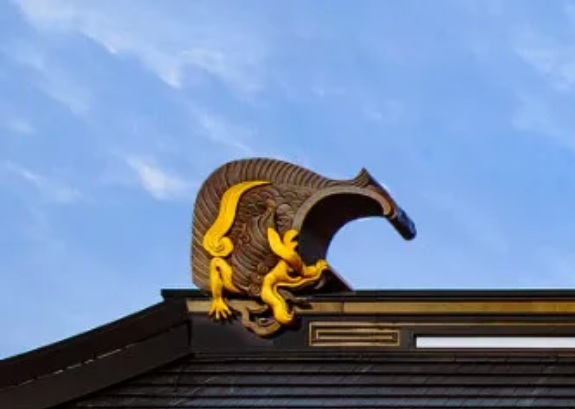 《青箱雜記》記載:“海為魚,虬尾似鴟,用以噴浪則降雨”,唐代木構(gòu)建筑的鴟吻一般作鴟鳥嘴或鴟鳥尾狀。武漢璽院的知行書院正脊兩端安置的鴟吻,神秘威儀,栩栩如生。