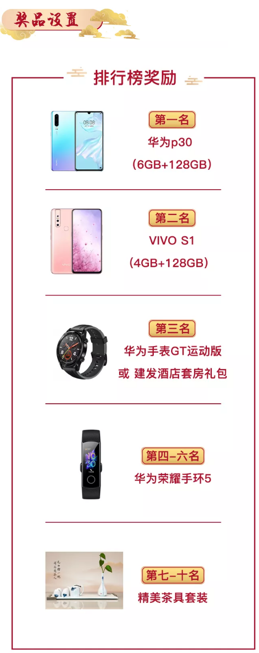 ▲ 在游戲截止時,成功完成拼圖數(shù)最高的前十名玩家可獲得對應(yīng)的排行榜獎勵,第一名為華為p30(6GB+128GB)手機。