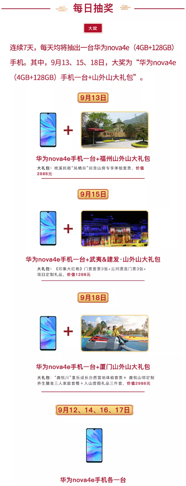 ▲ 使用25積分可抽獎一次,每日有華為nova4e(4GB+128GB)手機等大獎送出。
