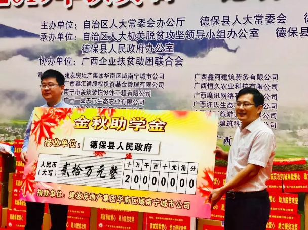 10月17日,建發(fā)房產(chǎn)在南寧開展愛心助學(xué)活動。本次慈善捐助行動是廣西壯族自治區(qū)消費扶貧助力脫貧攻堅活動之一,也是今年建發(fā)房產(chǎn)慈善基金“雨潤青苗”項目活動之一。