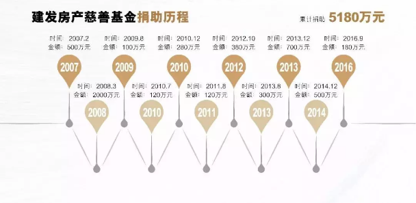 2007年,建發(fā)房產(chǎn)慈善基金成立,秉承"有愛就有路"的理念,目前已累計向該基金捐贈了5180萬元,資助貧困大學(xué)生超過5500人,資助貧困家庭超過2500戶,希望為每一個有夢想的奮斗者插上翱翔的翅膀。除此之外,在2008年四川汶川地震、2010年青海玉樹地震及2013年四川雅安地震后,向災(zāi)區(qū)捐款總計2300多萬元,積極投身災(zāi)后重建工作。
