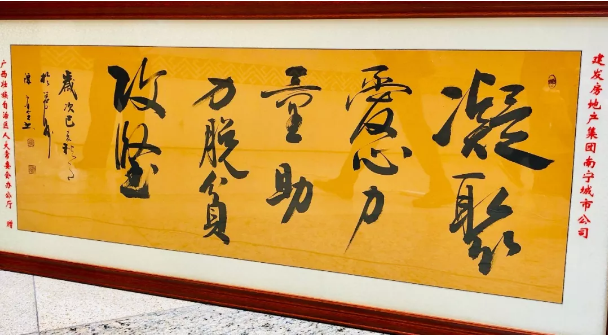 活動現(xiàn)場,主辦方授予建發(fā)房地產(chǎn)集團華南區(qū)域南寧城市公司愛心牌匾,同時廣西著名書法家當(dāng)場贈予書法作品。
