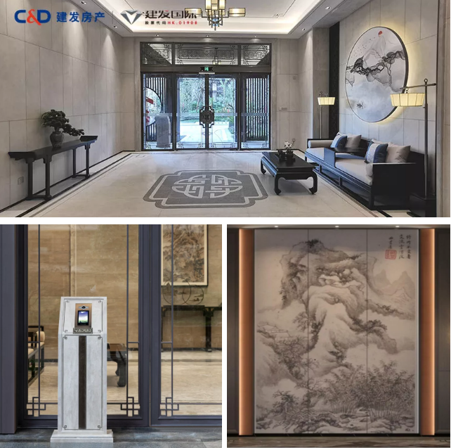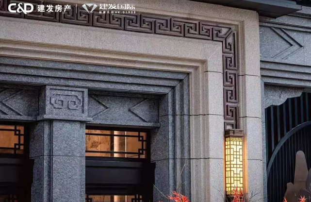 入戶門頭石材干掛,工藝精細(xì)、用料考究、分縫合理,充分彰顯項(xiàng)目品質(zhì)