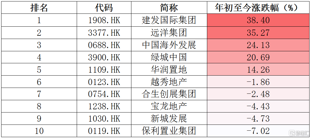 (表:克而瑞內(nèi)房股領(lǐng)先指數(shù)--年初至12月9日漲幅前10名)