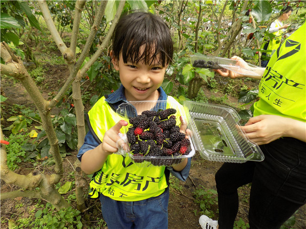 業(yè)主們在奪寶奇兵游戲后,跟隨隊長走進了桑葚采摘園,一棵棵桑葚樹樹大枝高,果實累累。在樹葉的掩映下,桑葚果隱隱露出了蹤影。大人們邊品嘗邊感受采摘的樂趣,小朋友們也很高興的體驗著農(nóng)家樂的感覺,頓時采摘園成了忙碌且幸福的海洋。
